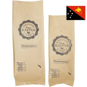 Der Papua Neuguinea AA stammt von der Plantage Sigri. Sie liegt ca. 1550 m über NN in der Nähe von Mount Hagen in der Region Waghi Valley, Western Highland Province. Sigri Estate wurde in den 50er Jahren gegründet und seither ist die Plantage für ihren guten Kaffee bekannt. Nach der Pflückung per Hand wird der Kaffee am selben Tag weiterverarbeitet: gepulped, fermentiert und sonnengetrocknet. Am Ende wird der Kaffee per Hand sortiert und auf der Plantage verkostet. Mit seinem fruchtigen Aroma und seiner zarten Schokoladennote im Abgang begeistert er seine Liebhaber. Der Papua Neuguinea AA ist ein außergewöhnlich charakterstarker Kaffee von besonderer Güte und Komplexität. Die direkte Verwandtschaft zum berühmten Jamaica Blue Mountain ist eindeutig zu erkennen. Schließlich wächst in Papua Neuguinea exakt die gleiche Arabica Varietät wie auf dem berühmten blauen Berg. Viele Experten sind sogar der Meinung, dass der Kaffee aus Papua New Guinea aufgrund seiner besseren klimatischen Bedingungen besser sei als der Jamaica Blue Mountain.